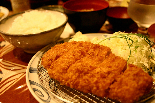 走出東京都廳大約是十點左右, 我們一行三人前往すすや準備要吃晚餐, すすや的位置在新宿王子飯店與歌舞妓町的中間, 面對"歌舞伎町一番街"入口的左手邊第一棟二樓就是了. 我們一上樓店裡的老闆一看我們是外國人 (很明顯, 因為日文根本一副聽不懂的樣子), 就拿出了英文菜單讓我們點餐, 英文菜單與日文菜單差別不大, 基本上我們來這邊就是要吃他們的招牌, 炸豬排飯. 在等待餐點來的時候, 先會上三盤小菜, 都是醃漬類的, 應該算是開胃菜. 豬排飯有兩種, 差異並不大, 價錢則不便宜, 我點的是套餐, 除了豬排飯外還有一碗味增湯, 共1750日圓. 他們的豬排入口就會感覺不同, 炸的程度恰到好處, 很好入口, 一點都不會乾澀. 而且他們有自己獨加特調的醬料, 吃起來有點像是特製的沙拉醬, 跟炸豬排的味道很搭配, 十分下飯. 盤子內除了豬排外, 還有生菜, 搭配著吃可以去除炸物帶來的油膩感.